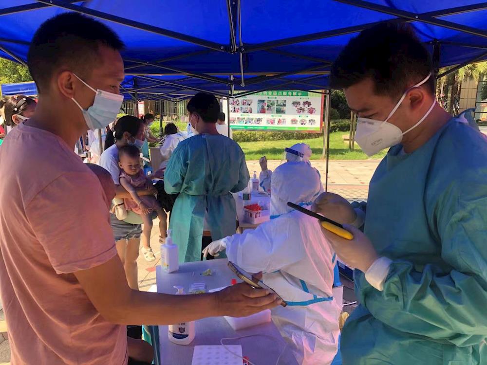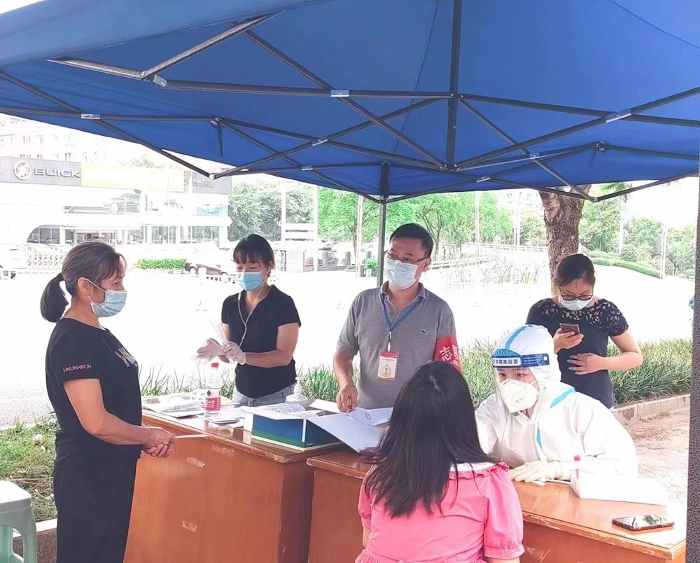 興瀘水務(wù)集團(tuán)機(jī)關(guān)一支部書記唐建華收到黨委號召后,便第一時(shí)間在支部群里發(fā)布了志愿者召集令,并身先士卒,立馬聯(lián)系百子圖社區(qū)下沉一線,在百子圖農(nóng)貿(mào)市場、百子圖兆億核酸檢測點(diǎn)協(xié)助開展信息登錄、秩序維護(hù)、檢測棒發(fā)放等工作。